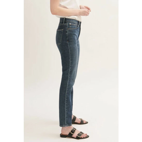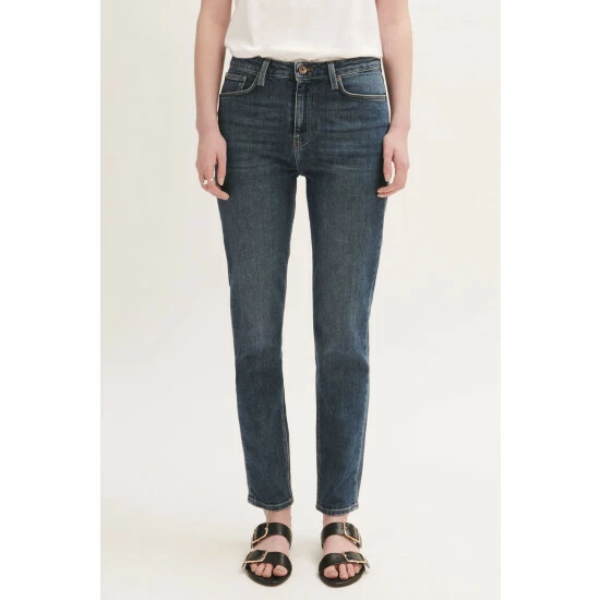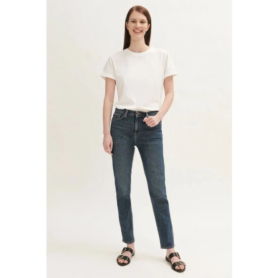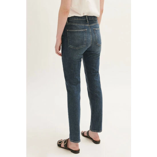 Classic slim leg ankle crop. Medium-high rise. Skinny fit from hips to knees. Slim fit from knees to hem. Comfort stretch denim. Main fabric is sustainable cotton, produced with recycled polyester sewing threads and zip tapes. Produced with low EIM (Low Environmental Impact Measuring) score.