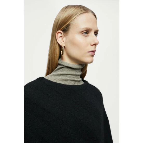 Pure cashmere poncho. Made from fully traceable Mongolian cashmere. Supersoft with a warm and lofty feel. Knitted with a flat rib pattern, this hat becomes a luxurious essential to elevate any outfit.