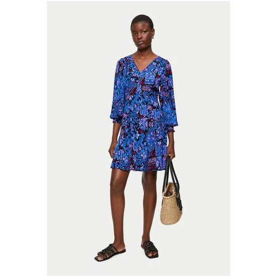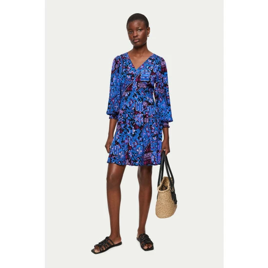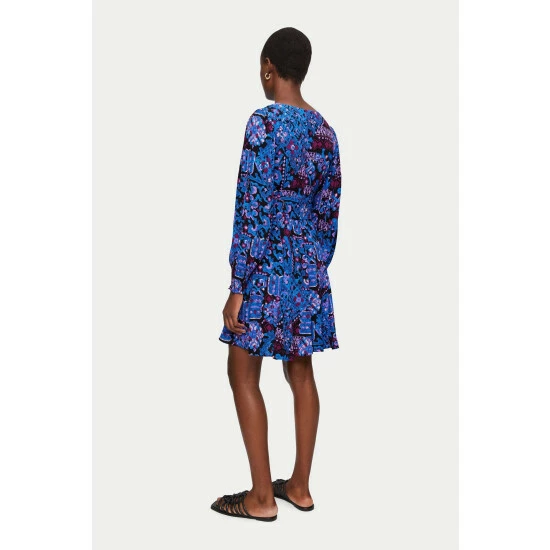 In house designed Baroque Arms print cut in crepey fluid viscose. Feminine V-neckline with flattering shaped waist panel. Full voluminous sleeves with smocked cuffs and a full skirt.