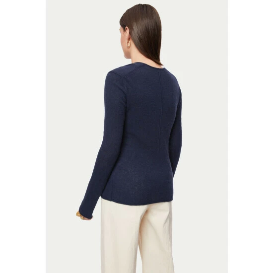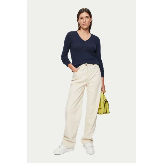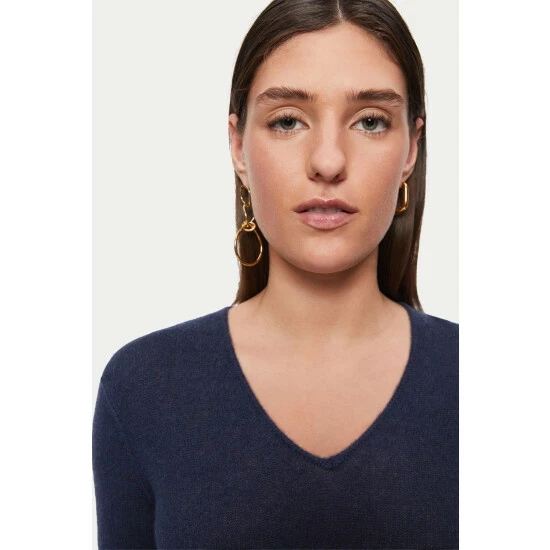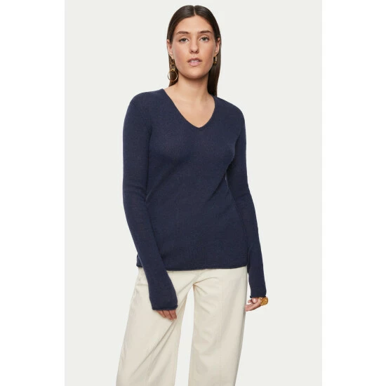 Cashmere V-neck jumper, knitted off gauge for a superbly soft and lofty feel. A seasonal essential made from fully traceable Mongolian cashmere. Semi-fitted shape with extra long sleeves designed to fall over the hand or wear ruched up at the wrist. Featuring clean finish at the edges for a minimalist aesthetic with a 90’s edge.