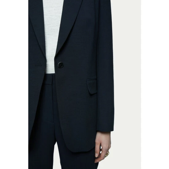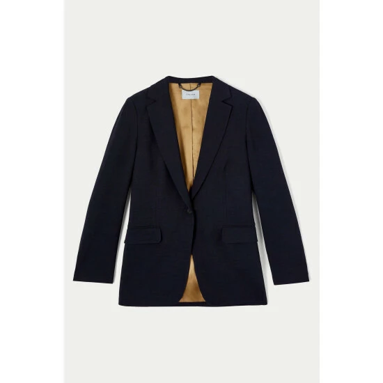 Tailored blazer cut from a sustainable viscose-blend with a crosshatch weave by Portuguese heritage mill RIOPELE. Featuring a single-breasted front with button closure, back vent, jet flap pockets, notch lapel and melton under collar. A smart casual blazer that is fully lined, perfect for light layering. Style with denim or as a suit with matching Fluid Twill trouser.