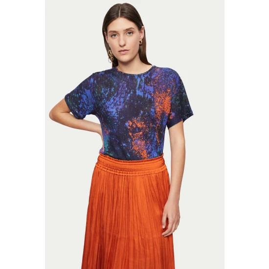 Pure linen T-shirt celebrating our collaboration with Ellen Mae Williams, a graduate from London’s Royal college of art and winner of the Harriet’s Trust Award for Craftmanship. Inspired by Oxfordshire summers, long grass, hazy sunshine and beautiful bright tones. The placement of the print on each T-shirt is slightly different so no two are exactly alike. Cut in Portugeause linen jersey with a simple round neck and grown on short sleeves, the perfect canvas to show off this unique print.