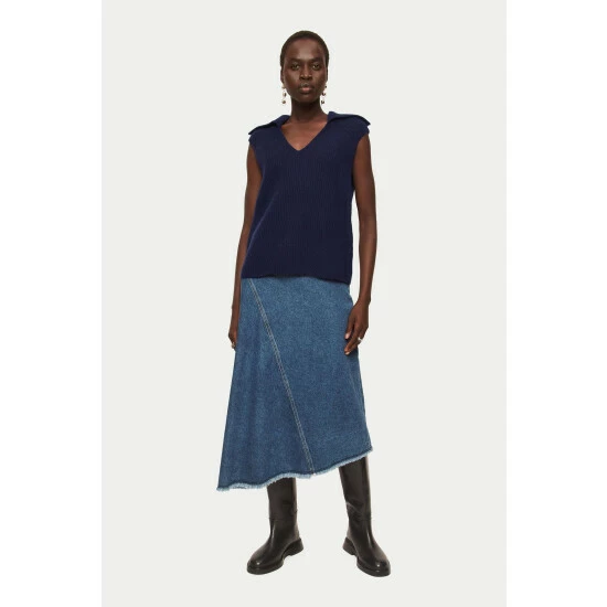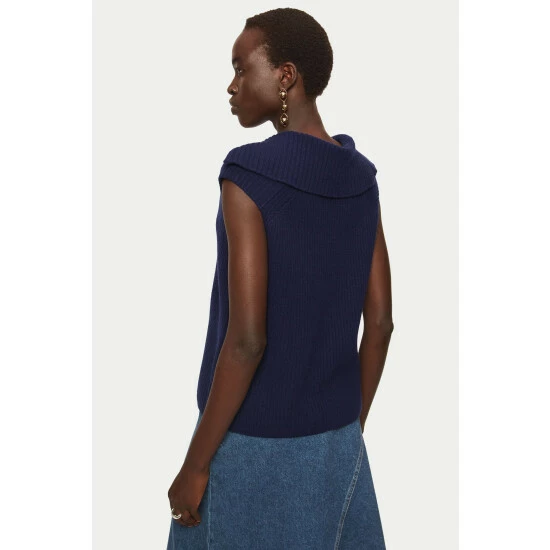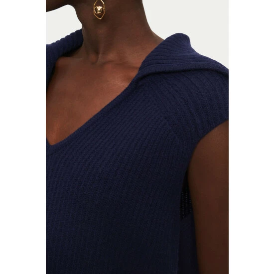 Luxuriously soft rib tank made from a beautiful RWS Merino and cashmere blend. Effortlessly stylish with an easy fit. Featuring a ribbed collar and open V-neckline. Perfect to layer over a shirt or dress or wear solo with relaxed wide trousers for a stylish silhouette.