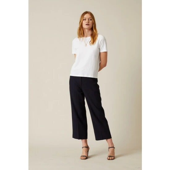 A flattering and cropped slim fit, our straight trousers are the must-have addition for your wardrobe. Designed with in seamed front pocket detailing, belt loops and a centrefront hook, bar and zip closure.
