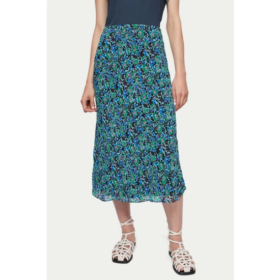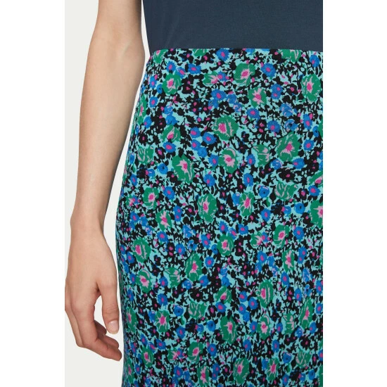 100% viscose printed skirt in contrast colour combinations of our vintage-poppy print. Skimming fit and flare style. A unlined midi skirt with self-gathered applique detail on front and back seams. Perfect summer day to occasion style.