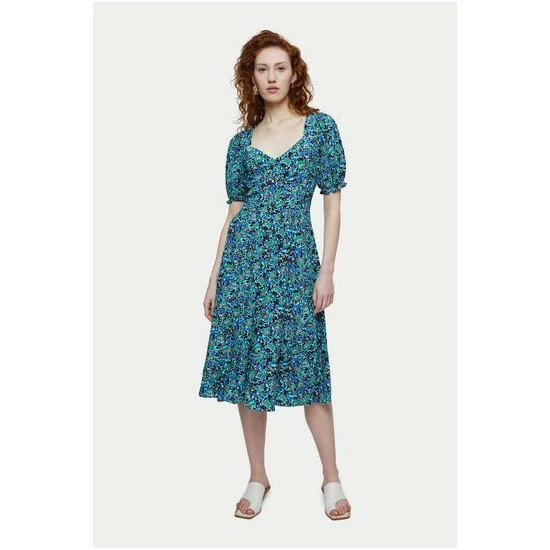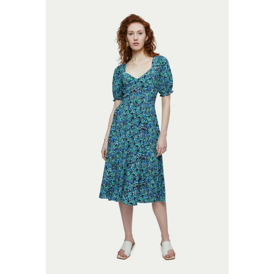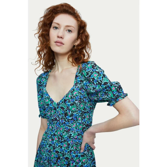 Viscose printed crinkle georgette dress in Jigsaw’s vintage poppy print. Fit and flare silhouette, fitted waist with loose fluid shirt. Featuring short gathered sleeves and open neckline. The perfect summer dress.