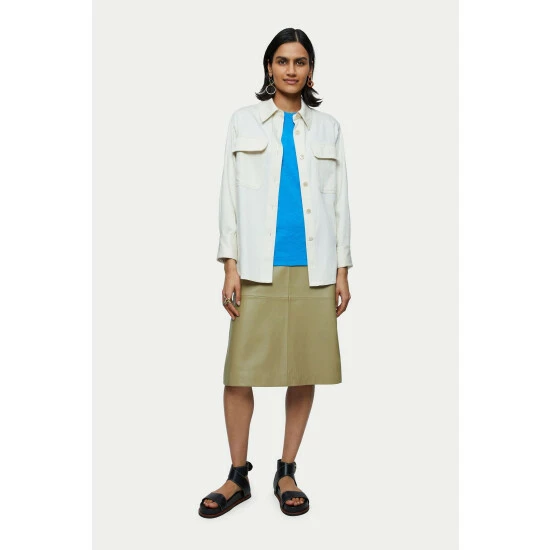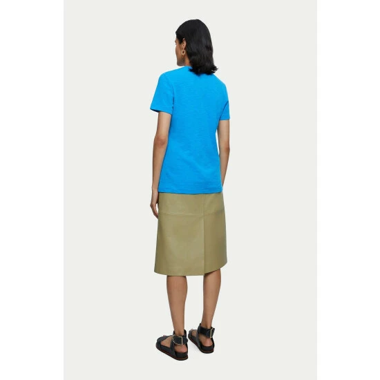Luxurious cotton T-shirt cut from a beautifully textured slub jersey. This thoughtfully designed wardrobe staple features a self bound neck and long hem thats easy to tuck. An effortless piece that is equally suited for layering or wearing alone.