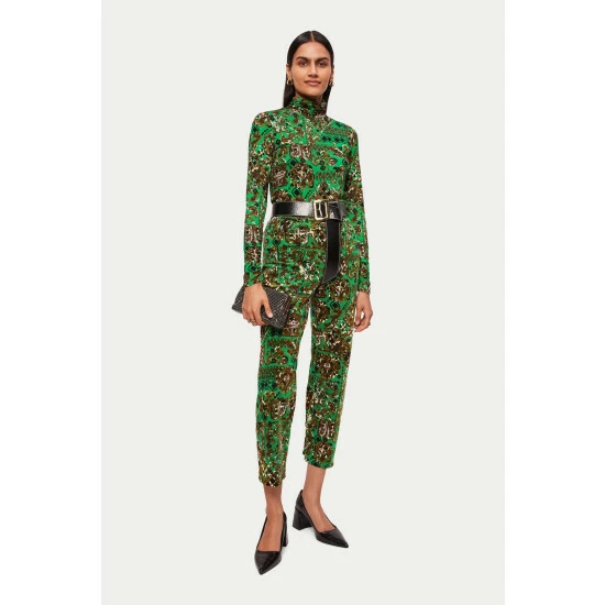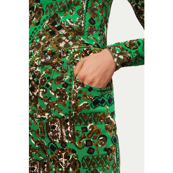 Our Baroque Arms print appears on the softest of fine wale cord in the Delmont jean shape; mid-rise with an ankle length easy leg shape. Classic five-pocket jean styling details. Pare down with sumptuous cashmere and silk pieces.