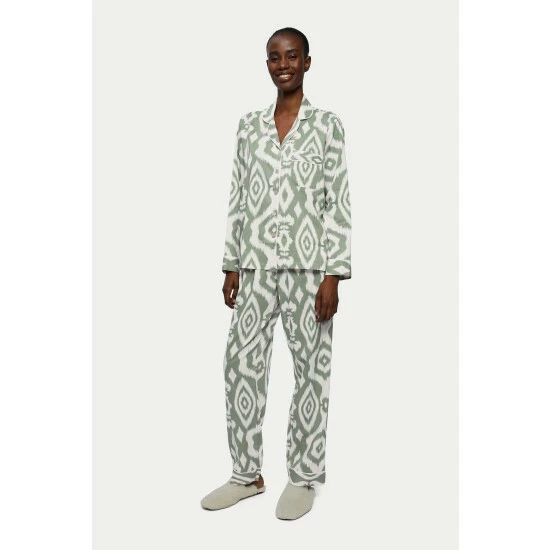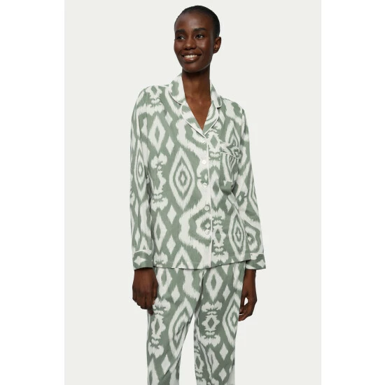 Ikat printed pyjama set with contrast piping and embossed mother of pearl buttons. Jigsaw’s best-selling shape, cut from lightweight cotton-Modal fabric that is soft on the skin. A comfortable, relaxed fit.