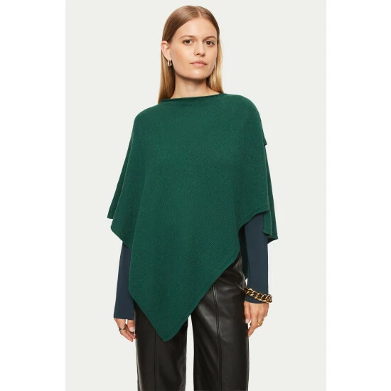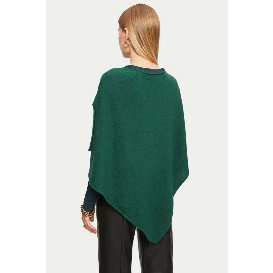 Our classic poncho updated with a new modern shape. Asymmetric back and front. Feminine open shoulder detail on one side. Roll edge finish on neckline. Made in Italy.