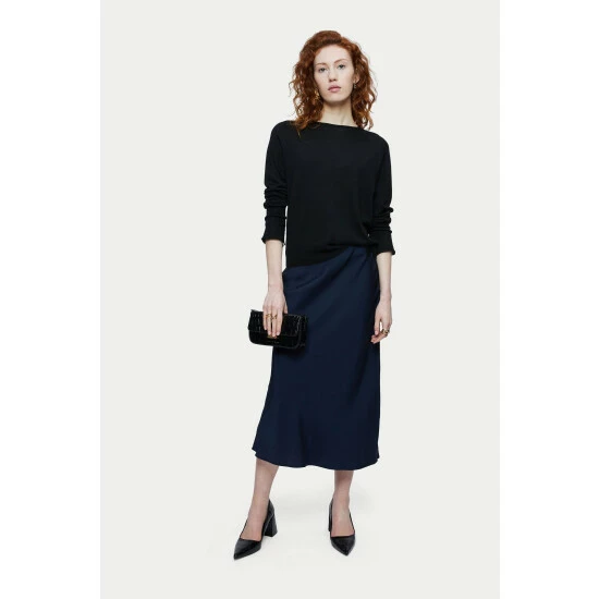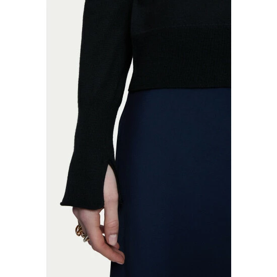 Merino crew neck jumper. Made from ethical ZQ Merino wool. Featuring subtle outside seams along the sleeves and stylish slits at the cuffs. Finished with our signature dart at the centre back. Designed for an easy and relaxed fit this elevated classic has endless styling options. Our certified ZQ Merino is ethical, sustainable and completely traceable through the production process right back to the farm where the wool is sourced.
