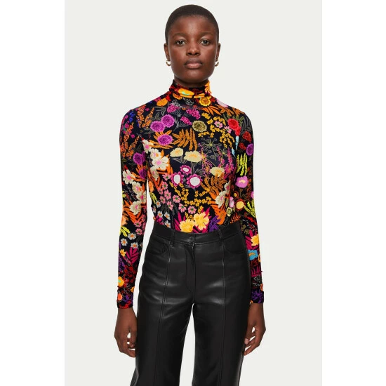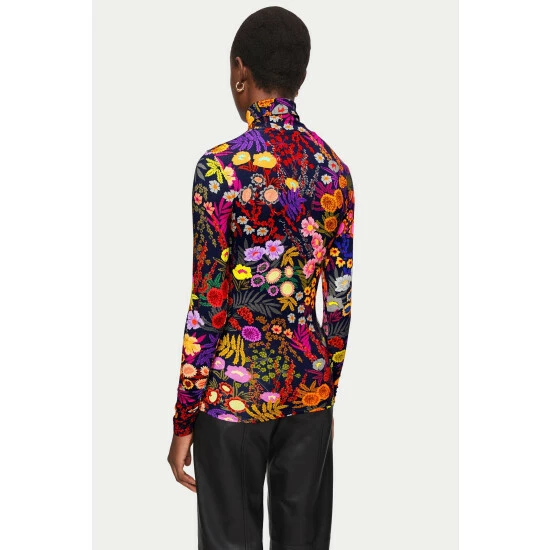 Printed onto viscose jersey with a little added stretch, this slim fitting layer in vibrant Midnight Garden print is perfect as an underlayer to tailoring or as a statement piece back to denim and leather separates.