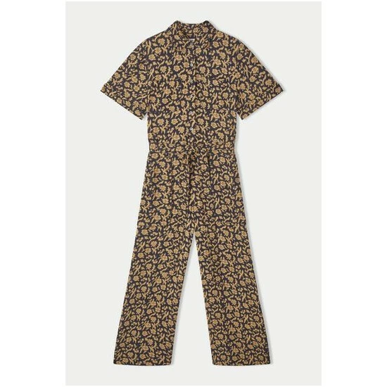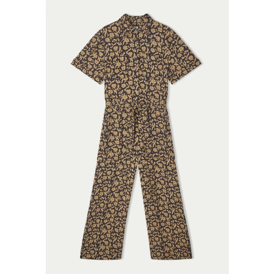 A new addition to our jumpsuit range and a longer version of our summer printed playsuit. Cut in drapey creped viscose and easy fitting throughout, our neutral Myrtle Printed all-in-one is perfect with flats or heels for a more dressed up look. Short-sleeved design with button to neck front fastening and classic soft collar. Complete with a self-belt to cinch in the waist with belt loops, front patch pockets, back jetted pockets, and ankle length. Print also appears on a fine needle cord range.