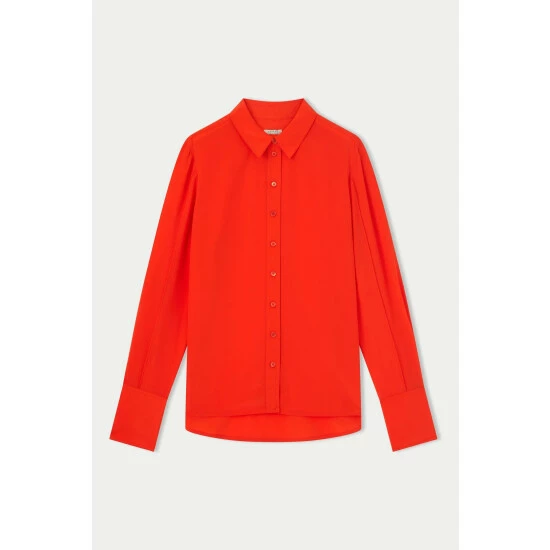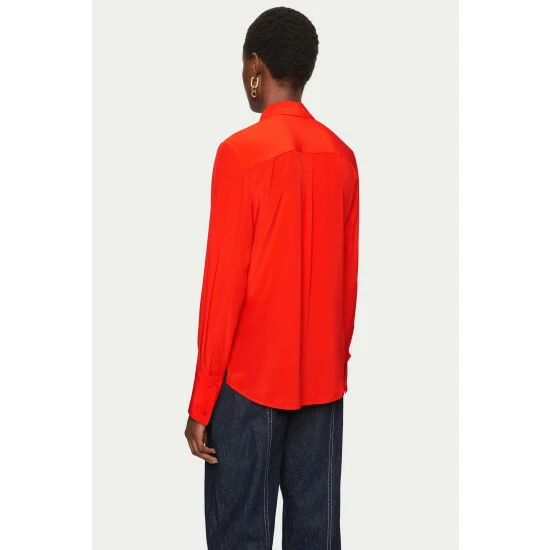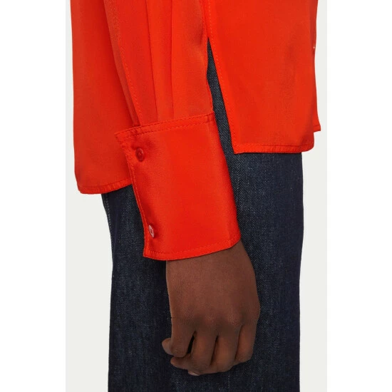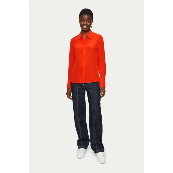 A Jigsaw classic, comfortable yet stylish long sleeve 100% silk shirt. Designed with tonal twin stitch detailing and longer cuff which can be folded back. Features a button through placket with mother of pearl buttons and split hem detail.