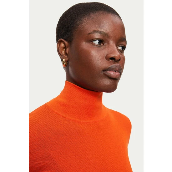 Knitted in a luxe silk cotton blended yarn this subtly ribbed poloneck sweater is the perfect lightweight underpinning for the season ahead. Layer under tailoring for a bright colour injection or winter-proof your dresses with a warming underlayer. Slim fitting, long sleeves with an easy polo neck.