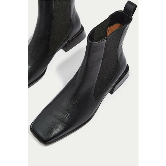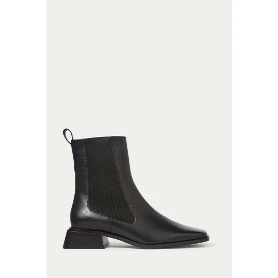 An elegant everyday Chelsea boot featuring a flared heel and square toe. This boot will be a perfect match to style your autumn outfits.