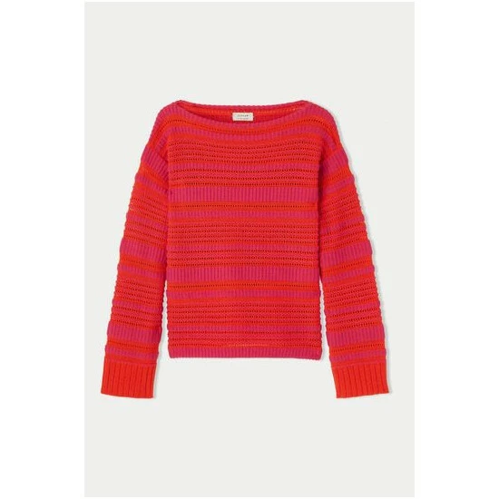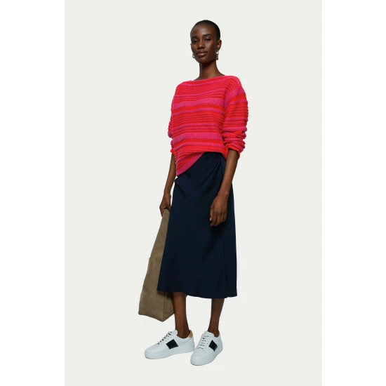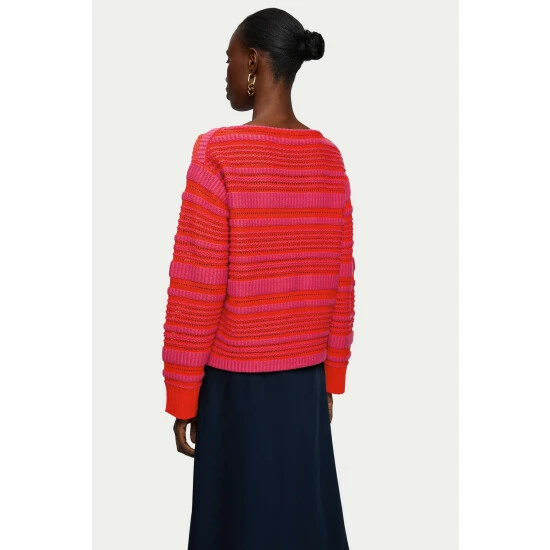 Striking cotton blend jumper featuring a textured stitch stripe. Designed with an easy loose fit and long sleeves. Style this beautiful piece with denim or relaxed tailoring.