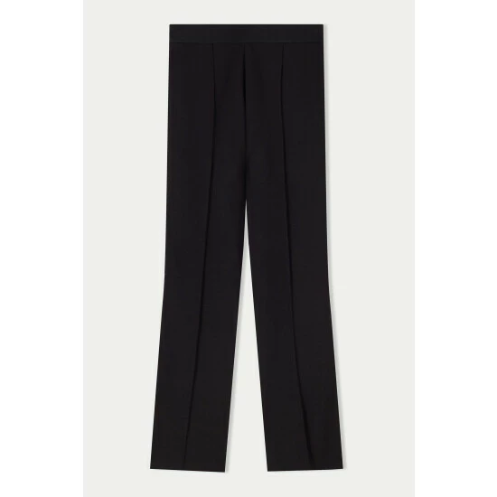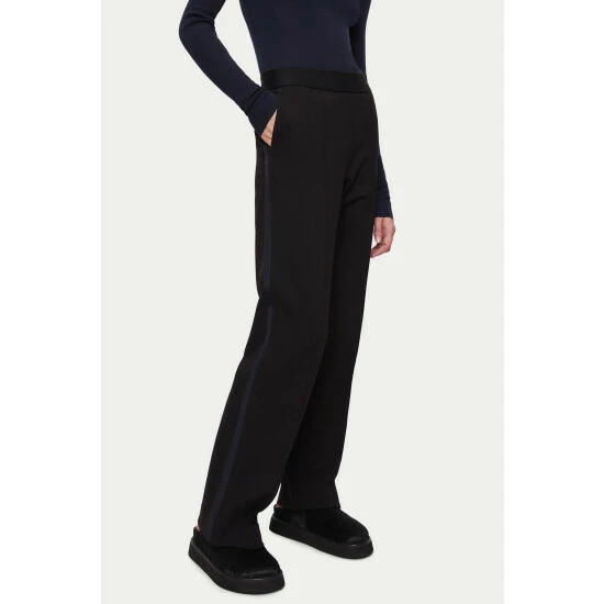 Sporty chic, this trouser cut in Spanish heavy Ponte jersey with Italian grosgrain leg trim is the perfect marriage of smart casual dressing. Team back with a cashmere sweater or oversized poplin shirt and sneakers for a polished look. Easy fitting with an elasticated waist and leg seam detailing.