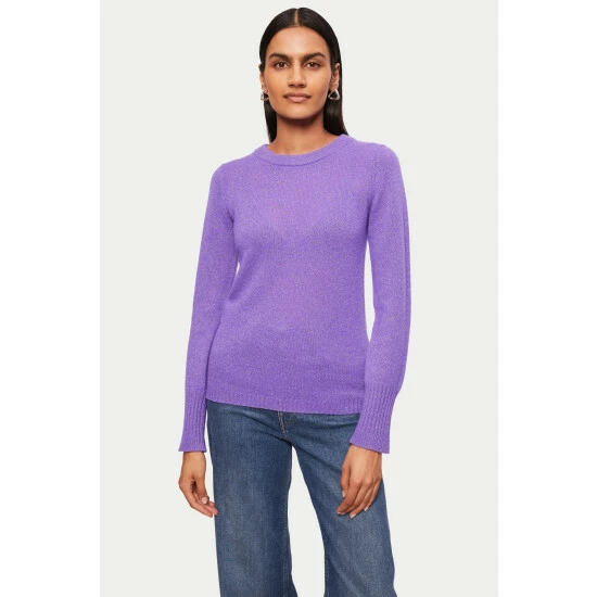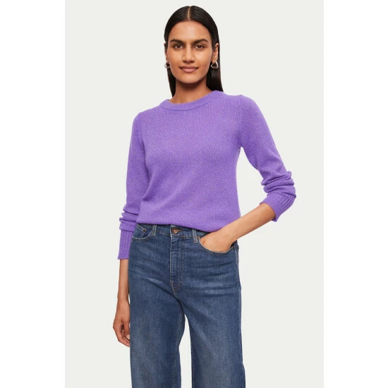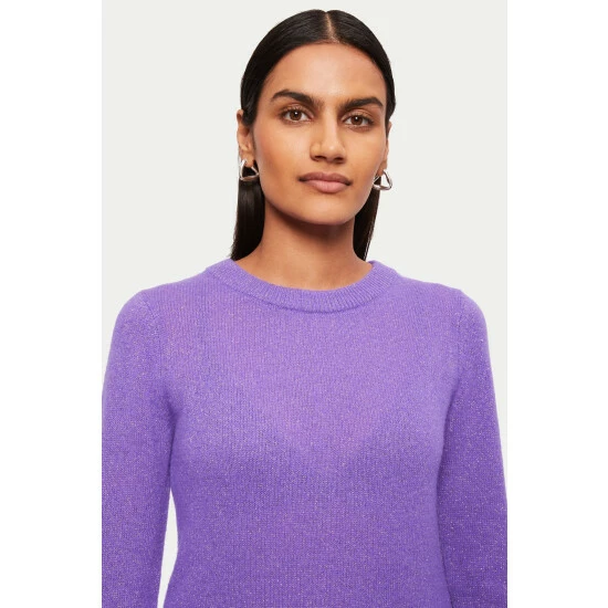 Luxurious cashmere jumper knitted with delicate strands of metallic thread which subtly glisten in the light. Slim fit silhouette with a simple round neck and long sleeves. This is a special edition of our iconic cloud cashmere crew neck jumper. Lightweight and soft, this is perfect for layering or wearing alone with relaxed tailoring or a satin slip skirt.