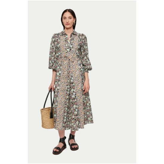 Mix-print cotton summer dress, beautiful fresh and light premium cotton with a slight surface texture printed in a contrast combination of our Etoile Poppy print. With self-adjustable fit and flare waist channel and full sleeves with elasticated smocked cuffs. Perfect to style with sandals or trainers.