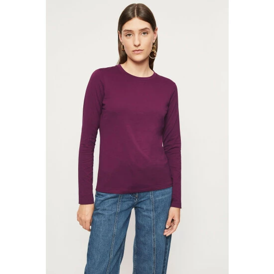 Soft Supima cotton long sleeve T-shirt. Cut in a classic fit silhouette with long slim sleeves this elevated basic serves as a great foundation piece for any outfit. Supima is a superior type of cotton grown in the USA. It represents less than 1% of the cotton grown around the world. Supima is naturally sustainable and grown with great care to conserve water and the preserve the health of the land.