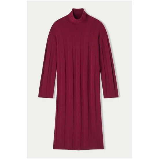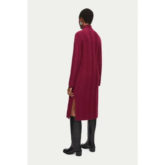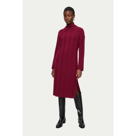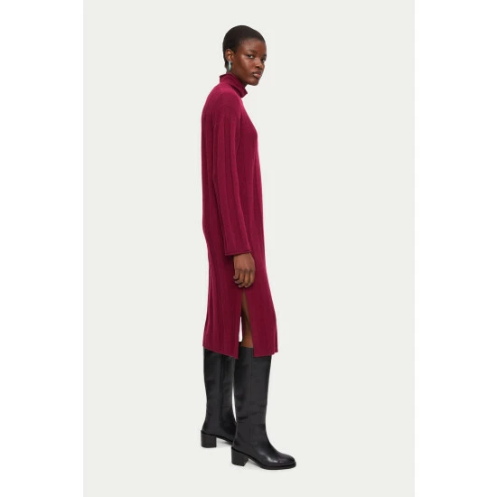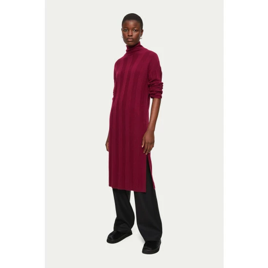 Soft merino knit dress. Featuring deep side slits and slouchy neck. The loose relaxed silhouette has dropped shoulders and wide sleeves for a comfortable fit. Pair with chunky boots and an oversized bag.