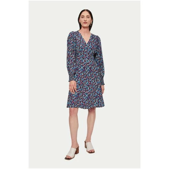 Our Autumnal vintage ditsy floral print updates one of our best-selling dress shapes, in a beautifully fluid viscose. Flattering v neckline, deep shaped waistband and feminine godet skirt shape. Voluminous sleeves with a versatile shirred cuff allow you to push the sleeve up.