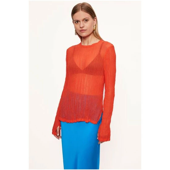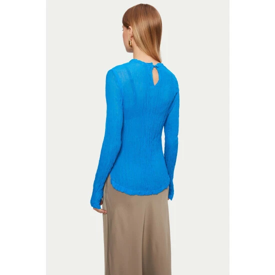 Long sleeve top woven from crinkled viscose georgette. Features a split hem, button at cuff and back of neck. Designed as a colourful layering piece, style under tea dresses or over vest tops. Includes a storage bag which makes it perfect for packing whilst maintaining the crinkle finish.